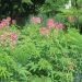 Cleome has been a garden favorite since the 1800s. It is dramatic, fast-growing and at 4-feet high is suitable for the back of the border or in the middle of an island bed. It blooms without pause beginning in late June and continuing until frost. The large, globe-shaped clusters of flowers have long, protruding, thread-like stamens, thus the common name. The flowers are usually shades of pink, but cultivars are available in violet or white. Cutting off the older flowers every other week will insure fresh blooms. Later, elongated seedpods will develop below the flowers.