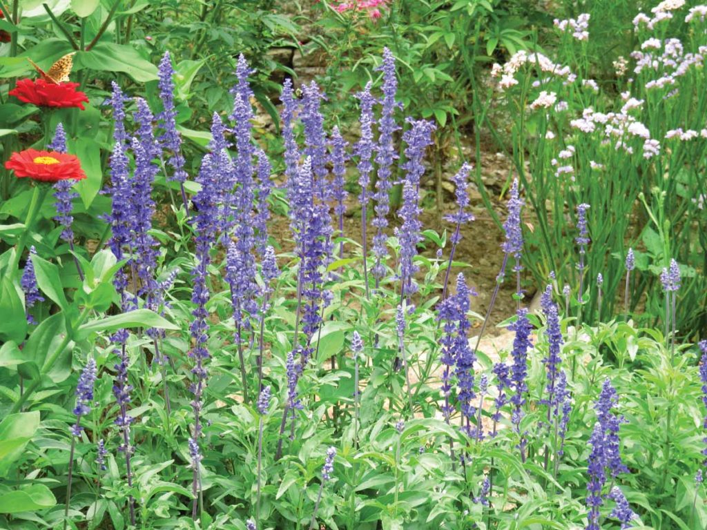 I’d call this the one annual that is worthy of being in everyone’s garden. It displays showy 2-foot spikes of deep-blue flowers above gray-green foliage from early summer to frost. It is a vertical plant that goes with anything but will look especially dramatic with orange flowers (like the California poppy). It will mix with pastel colors just as well.