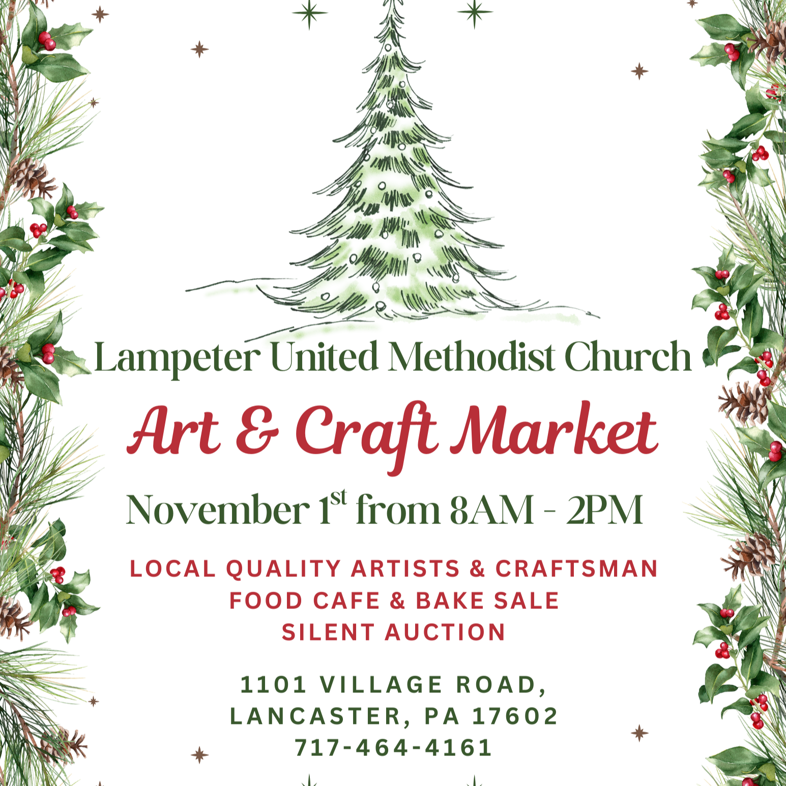 With 30 quality vendors onsite, visitors will find handcrafted jewelry, rustic birdhouses, paper crafts, essential oils, seasonal wreaths, beeswax creations, original artwork, fall and Christmas décor, and laser-cut wood designs and more. The Food Café and Bake Sale will be offering homemade treats and warm meals. A Silent Auction will feature items such as tickets to the Fulton Theatre, Dutch Apple Dinner Theatre, Magic & Wonder Dinner Theatre, Sight & Sound Theatres, an autographed Pittsburgh Steelers photo and more. Proceeds benefit the church’s Children’s and Missions Ministries, supporting programs that serve the congregation and wider community. 8 a.m.-2 p.m. 101 Village Road, Lancaster. Information: LampeterUMC.com