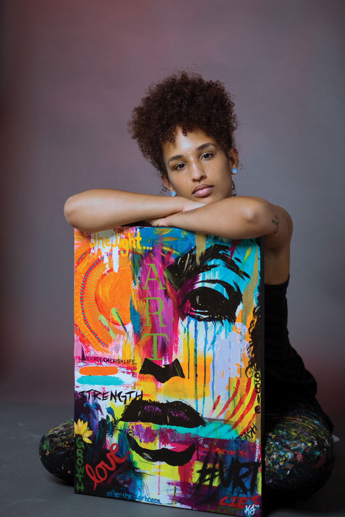 Keisha Finnie was one of the artists selected for the project. Her mural, which addresses the mental health aspect of coping with the coronavirus, features the legend, “Nurture Your Mind.” It’s accompanied by the image of a Black woman whose head is encircled with a vivid display of flowers. The mural essentially captures Keisha’s interests and view of life. She says the inspiration for her art comes from “living life and being a woman of color.” It’s also borne out of “a love for nature, vibrant color, texture and the female form.”