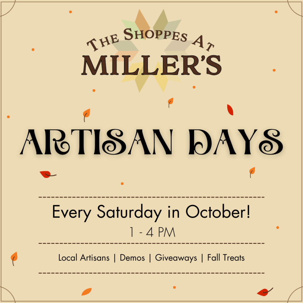Miller’s Smorgasbord, which is celebrating its 95th anniversary in 2024, is hosting Artisan Days at The Shoppes at Miller’s every Saturday in October. Local artisans will be on hand to showcase their work and chat with guests. Also, The Quilt Shop at Miller’s will have a local quilter doing hand quilting demonstrations. 1-4 p.m. 2811 Lincoln Highway East, Ronks. Information: Millerssmorgasbord.com.