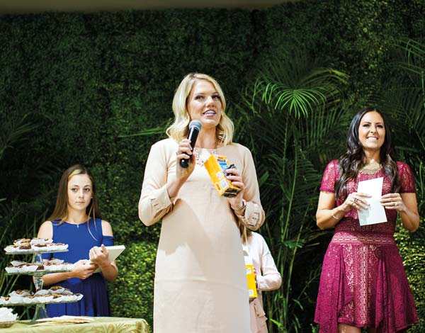The party’s co-emcees, sister Lauren Nikolaus Zink and best friend Kate Groshong, entertained guests with a safari-animal-mamas game, while an ivory and gold Victorian couch allowed Anne to take center stage for the baby shower tradition, the opening of gifts for Baby Boy Nikolaus-Pereira. After expressing her heartfelt thanks, Anne treated her guests to a take-home gift of a succulent plant in a gold pot, as a symbol of life, especially the new little life about to arrive in two months.