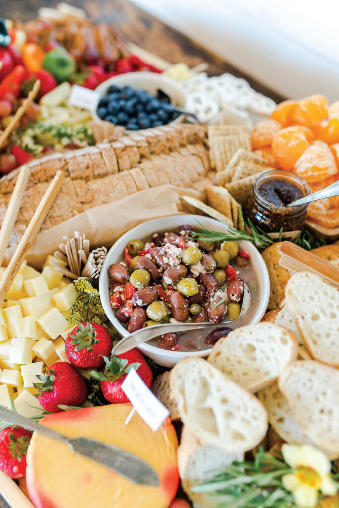 The touch of blue also made its way onto the menu. Kim’s Bakery in Mohnton designed the delicious cupcakes that were iced with blue frosting. The bakery also replicated a baby-boy-themed sugar cookie Kelsey had seen online that would serve as party favors. The menu also featured a bountiful charcuterie board created by Cypress and Thyme Events in Honey Brook.