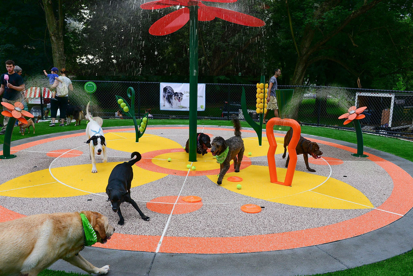 Dog parks provide secure environments in which dogs can exercise and socialize.