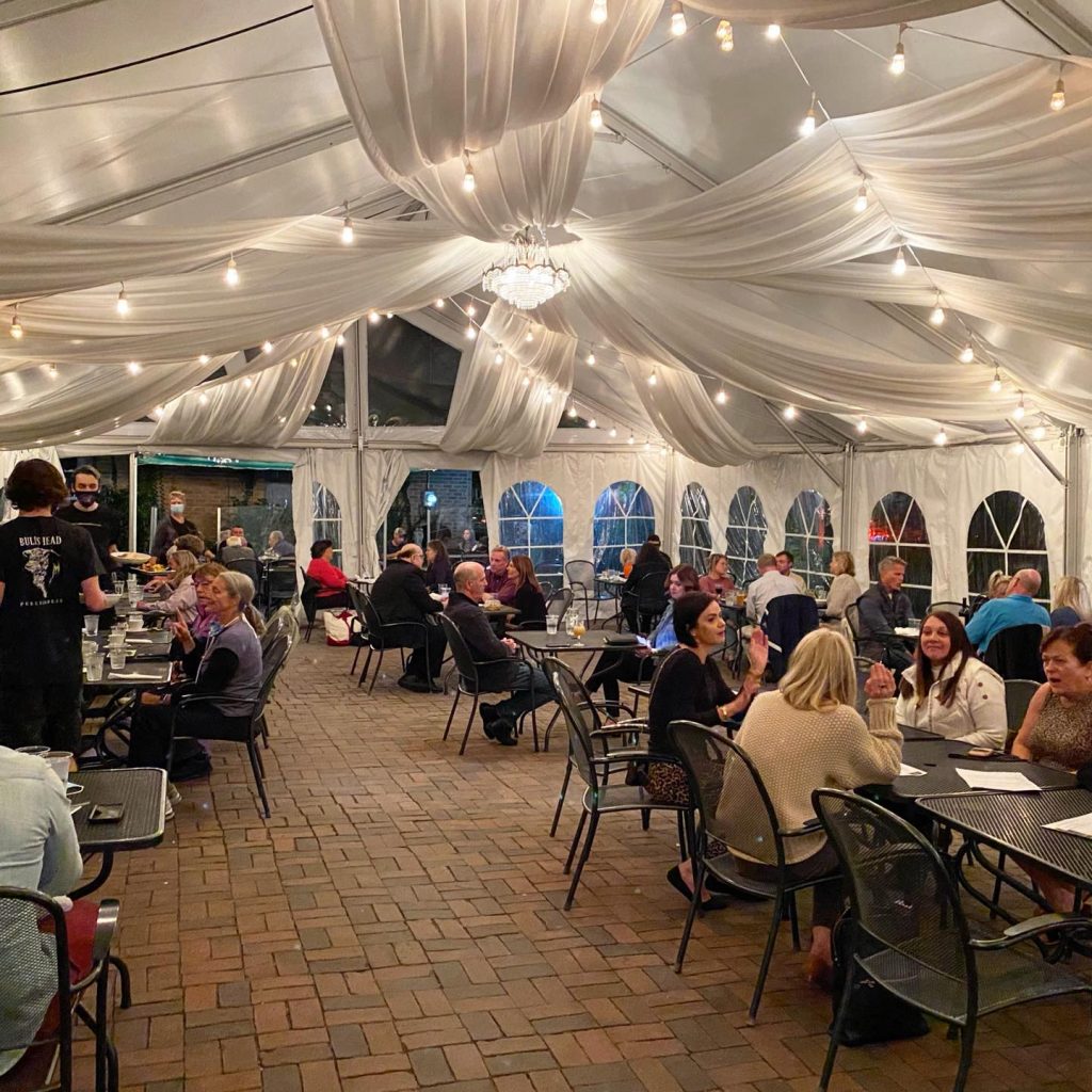 Patio heaters are often the first step to help maintain comfortable temperatures in outdoor dining spaces. The General Sutter Inn installed a new heating system on their tented patio. Bulls Head’s patio also remains open thanks to their gas patio heaters.