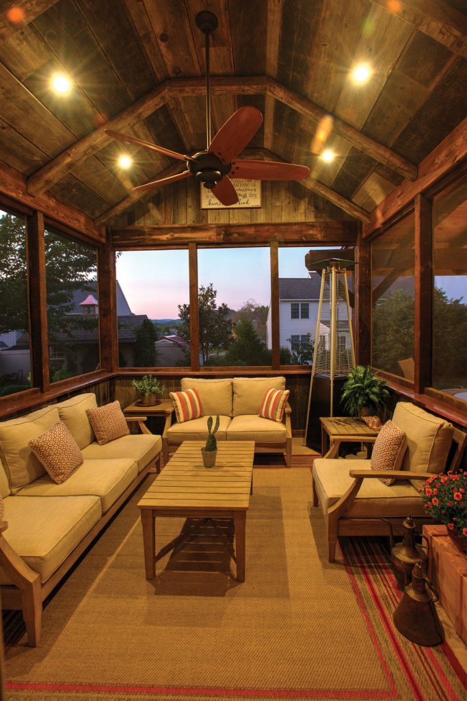 Various types of wood and stone veneer provided the makings for the “different” look Jeff and Darlene Dobbs desired for their outdoor-living area. The door that leads to the screened porch was salvaged from Ephrata’s Mountain Springs Hotel.