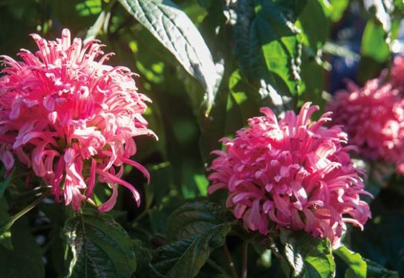 That might qualify as an understatement. Tim’s tropical oasis resembles something you might see in Florida as opposed to South Central Pennsylvania. “I love tropicals and have always been interested in them,” Tim continues. He traces his infatuation to the fact that tropicals are “bold, colorful, dramatic and heat-loving.” And, he loves to push the limits on “wanting what you can’t have.” As a result, the backyard is abloom with plants that arrive from Florida each spring. “I work with a broker down there,” Tim reports. Fortunately, Tim and James have greenhouses on the property that allow them to over-winter many of their plants. “But, clients get priority,” Tim says of his B&B for plants that are susceptible to cold weather.