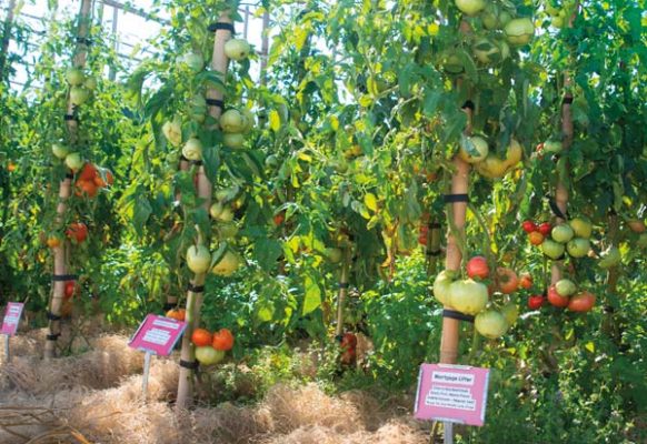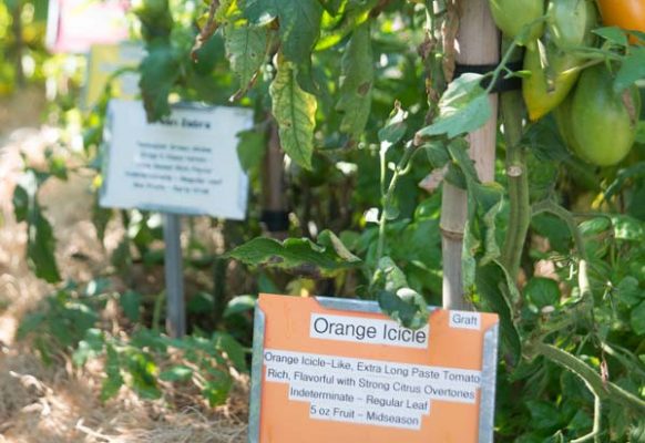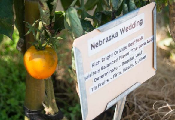 Tomatoes are a specialty of the house. Last year, James experimented with 15 kinds of tomatoes (nearly 100 plants), some of which he had successfully grown in the past and some that were new to him. “Most of them are heirlooms,” he says of the old-fashioned varieties that not only deliver unrivaled taste sensations, but also bear engaging names such as “Mortgage Lifter” and “Nebraska Wedding” (also known as the “Love Apple”). Additionally, he has been experimenting with grafted varieties such as “Orange Icicle”. He’s also fascinated by a variety called “Indigo Rose”, reporting it “actually turns deep purple when it’s hot and sunny.” Each variety is accompanied by signage that, according to James, “aids in record-keeping” and contains pertinent information regarding size, color, taste and uses. The tomatoes are fully utilized during the growing season as they provide the makings for sun-dried tomatoes, marinara and tomato sauce.
