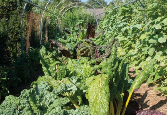 James relies on raised beds to grow vegetables such as onions, cucumbers, peppers, sorrel, eggplant, squash, kale, greens, potatoes and more. “We eat from the garden May through December,” he reports. The never-ending bounty is achieved through succession gardening, whereby plants are sown at timed intervals in order to ensure something is always growing or ready for harvest.
