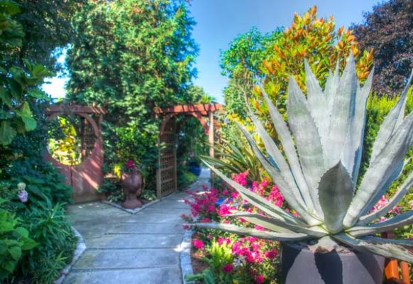 Enter the lush backyard and you immediately hear the sound of music, not to mention splashing water and birds. According to Tim, the only time music is not playing is in the dead of night. “I think the plants enjoy it,” he says.