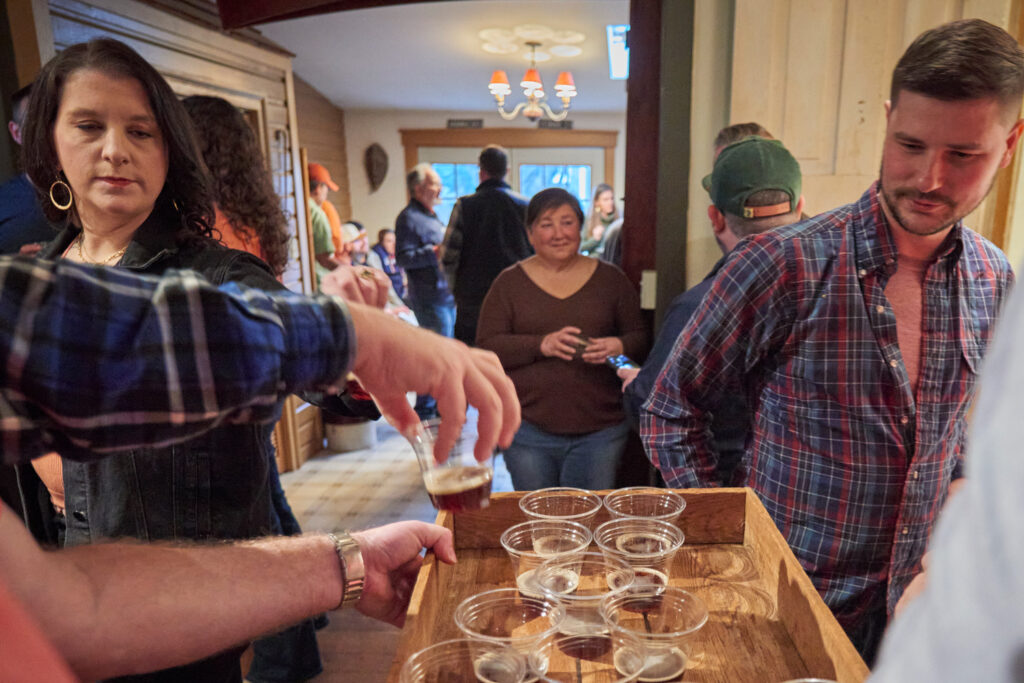Lindsay Gring, co-owner of Lancaster Pet Bakery, is a volunteer server for the event. Serving the beer is Phil Bernot.