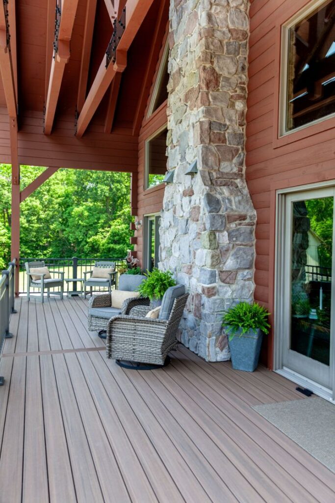 A custom roof structure was designed to echo the home’s existing timber-framed architectural details, creating a cohesive and elevated outdoor living experience. Relying on durable materials and refined craftsmanship, the installation of all-new decking, railings and stairs revitalized the space. The result is a beautifully integrated exterior retreat that complements the home’s design, enhances usability in all types of weather, and significantly extends the life and value of the outdoor space.