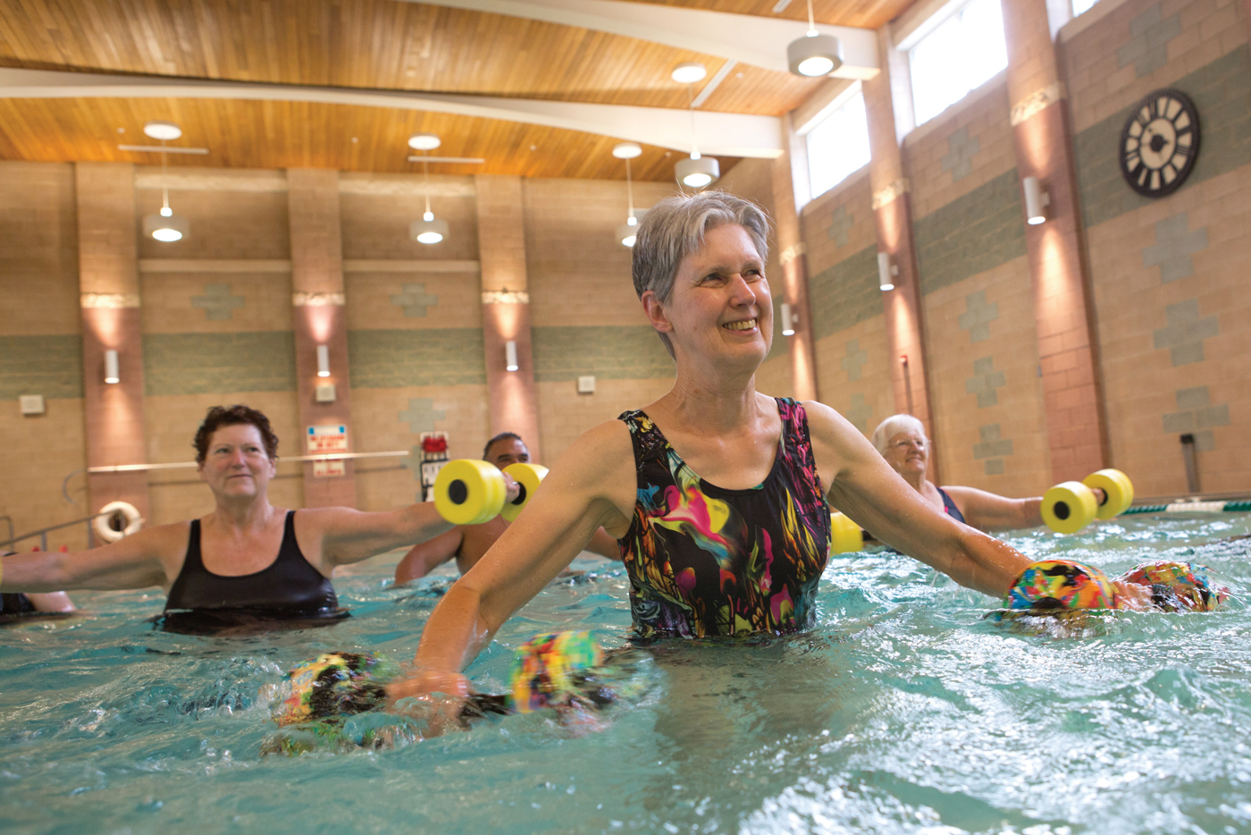 PVFiT fitness center is free to use for residents, with opportunities to exercise independently or with a trainer on the cardio and strength-training equipment. The heated, saltwater-treated pool is a great place to exercise or rehab from an injury. The fitness studio offers group classes like yoga, strength and better balance. Members can also head to the pool for water spin, water yoga or water volleyball. To enjoy the beautiful countryside and natural surroundings of the Pleasant View campus, residents can travel on the walking trail that circles around the property.