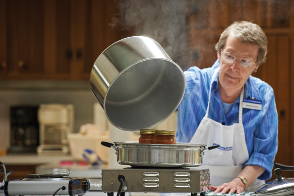 Canning is fairly straight forward once you know the basics. Clean, hot jars are packed with cleaned food, sometimes raw, sometimes cooked. Recipes provide a specific processing duration and temperature to heat all food inside the jar to a degree where anything harmful will be controlled. The duration and temperature of each recipe depends on the volume of jars used, the acidity of the food to be canned, and your geographic altitude above sea level (most of Lancaster County is below 1,000 feet). Proper temperature and food acidity are critical to keep mold, bacteria, yeast, and enzymes that cause ripening in check, which can cause food spoilage, illness and even death.