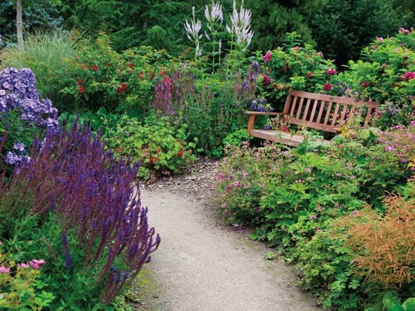If you are designing a new garden, lay out your paths carefully and be especially mindful of providing access to your borders for weeding without the need to walk over plantings. This can be done with island beds or by keeping borders only the depth that one can reach. Also be sure to provide comfortable garden seats in a shady spot where you can sit and take pleasure in your display.