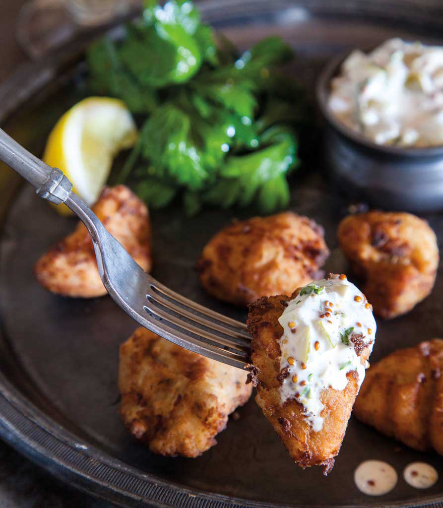Crispy Fried Sweetbreads with Dill Pickle & Grain Mustard Relish, Parsley Salad & Lemon