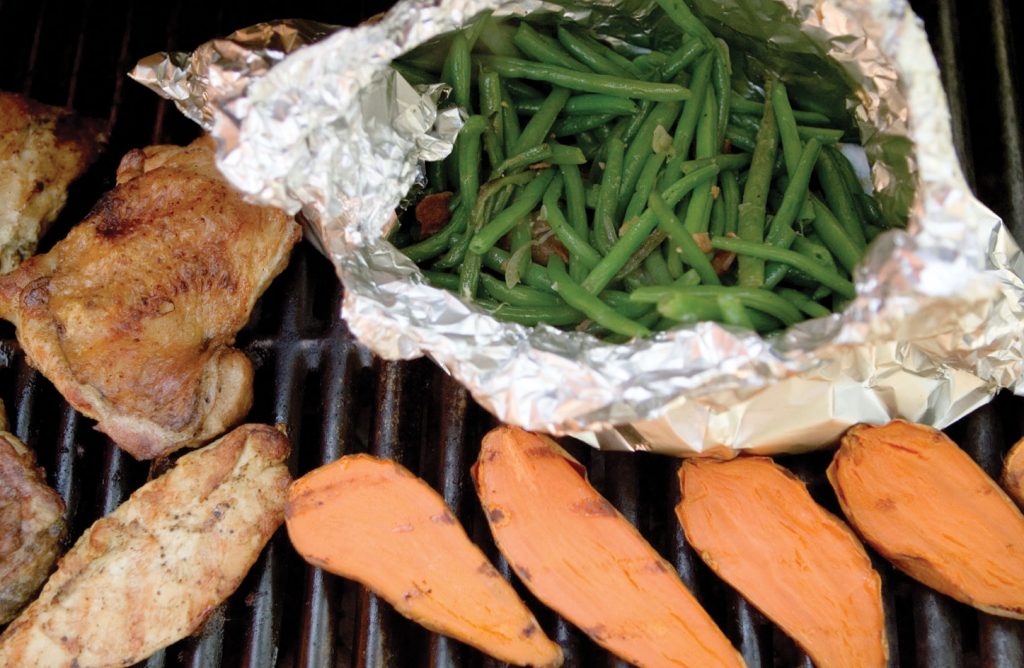 This method could not be any simpler to prepare. Similar to the French method en papiotte, in this case food is wrapped up in foil – with a little stock added to generate some steam – and is simply thrown into a heat source. The method allows the food to be baked and steamed at the same time, thus trapping all of the flavorful juices within. You can cook anything – shrimp, fish and potatoes – this way. Best of all, it’s so easy to do. Here, I’ve combined green beans with pre-cooked bacon (crumbled), sliced shallot, a touch of olive oil and stock for moisture. Just throw it on the grill – no pots or pans to clean up and no leftovers guaranteed! Serves 6.