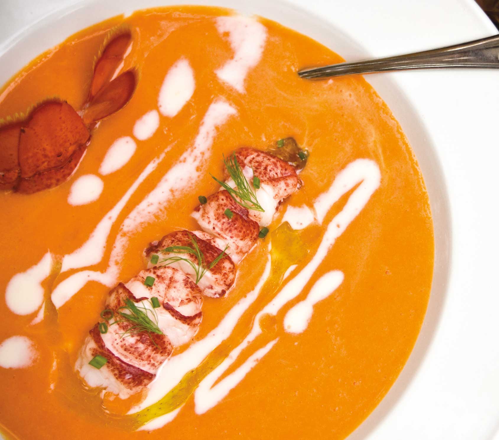 - Chop, slice or dice reserved lobster meat and gently warm through in a touch of butter. Ladle hot soup into warmed bowls and add lobster meat. Sprinkle with chives and drizzle with reserved cream. Serve at once.
