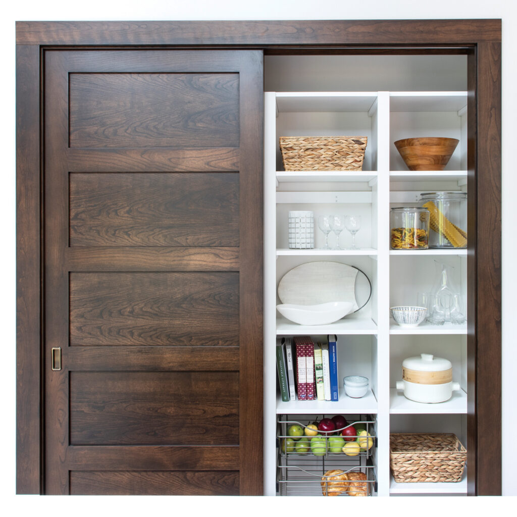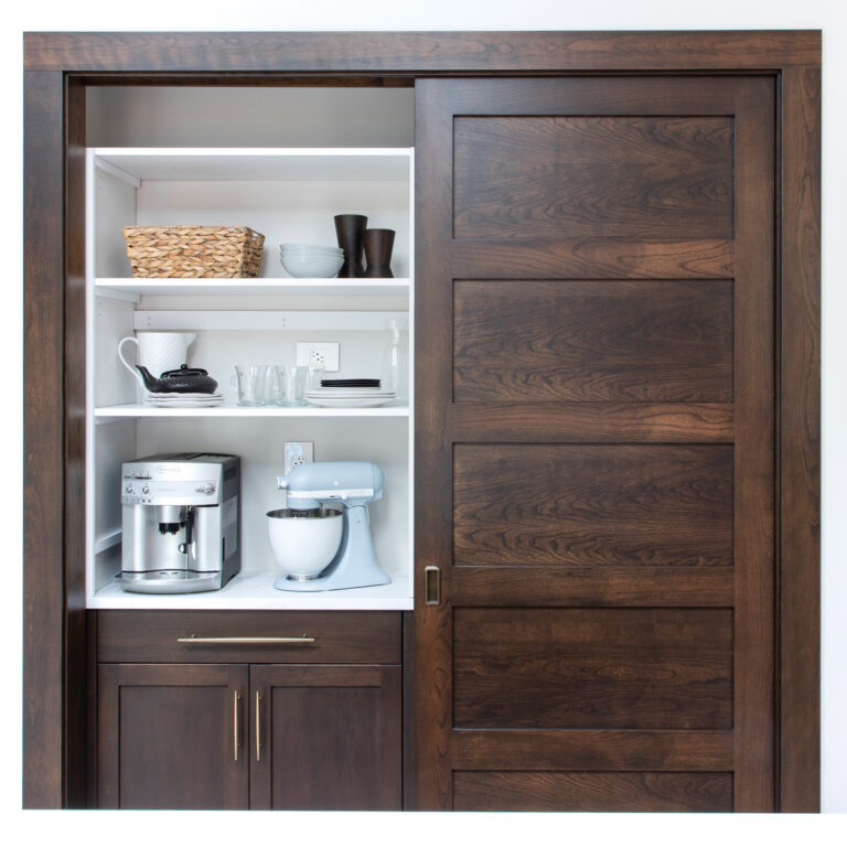 This kitchen pantry utilized the Victory Closets system to provide dedicated spaces for essentials such as paper products, as well as for small appliances and entertaining elements that are not used on a regular basis.