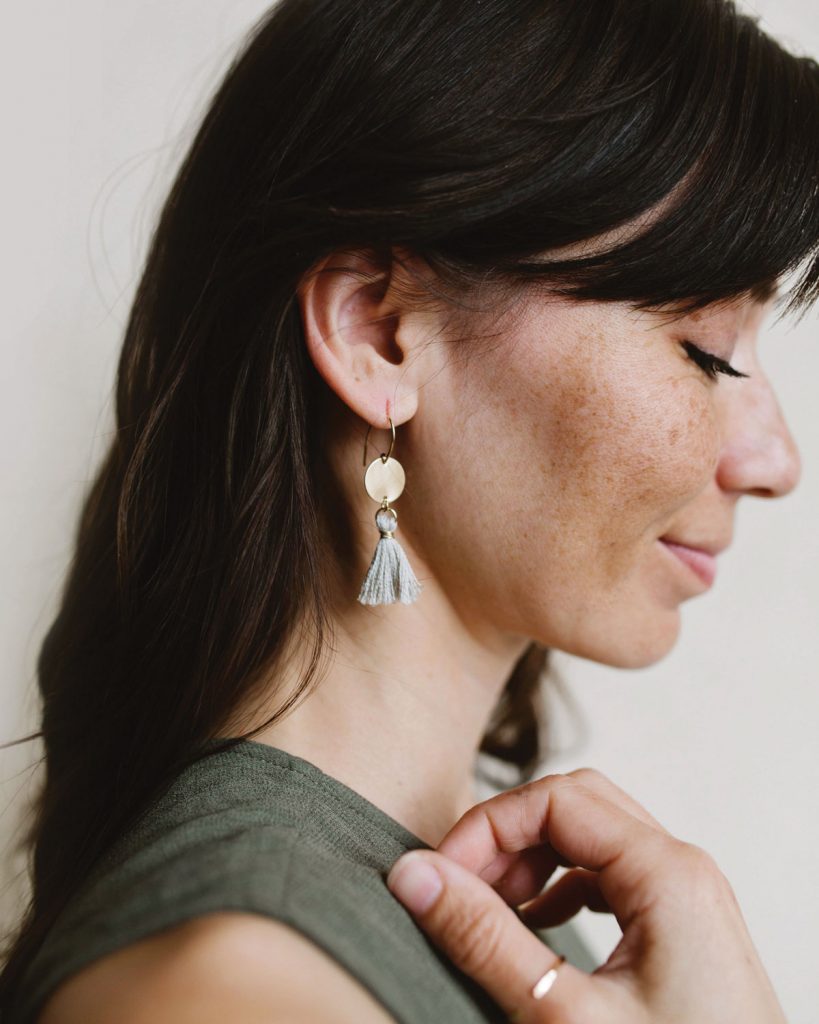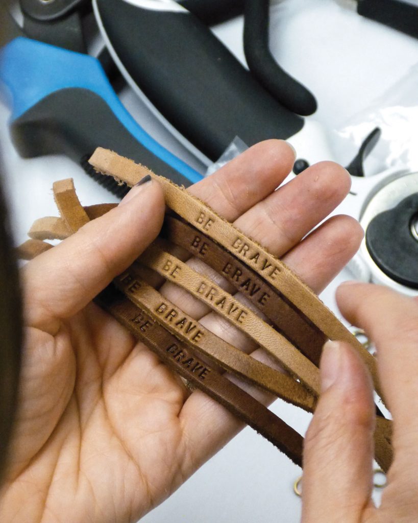 Justina Godfrey, Revolution’s jewelry designer and owner of SolidWerks (solidwerks.patternbyetsy.com), helps to source the materials for the jewelry-making process. “I make sure everything is made in the USA, that it’s durable and has good quality,” Justina notes. According to Revolution’s website, “All of the metal hardware is 14k gold-filled or sterling silver, both of which are hypoallergenic and nickel-free.”