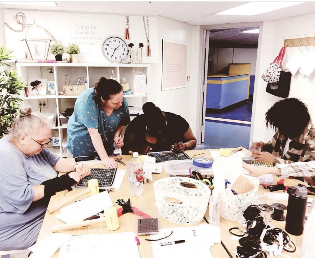 Currently, there are 12 women who participate in the social enterprise workshops held at the Y. Charissa says there is more of a turnover with the community nights at Water Street Mission, where 10 to 15 women typically participate each week. Statistics from the Revolution website state that in 2018 “13 makers earned $5,257 collectively,” according to their Maker Report.