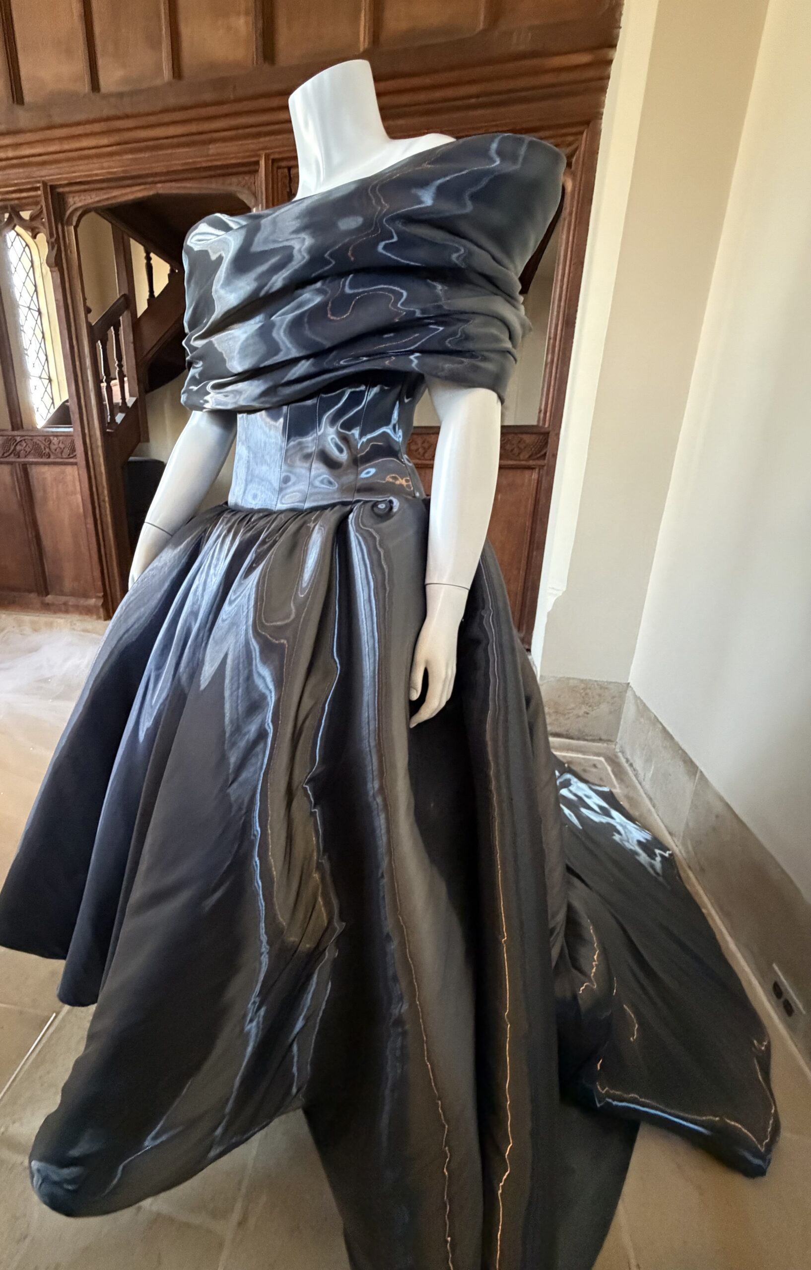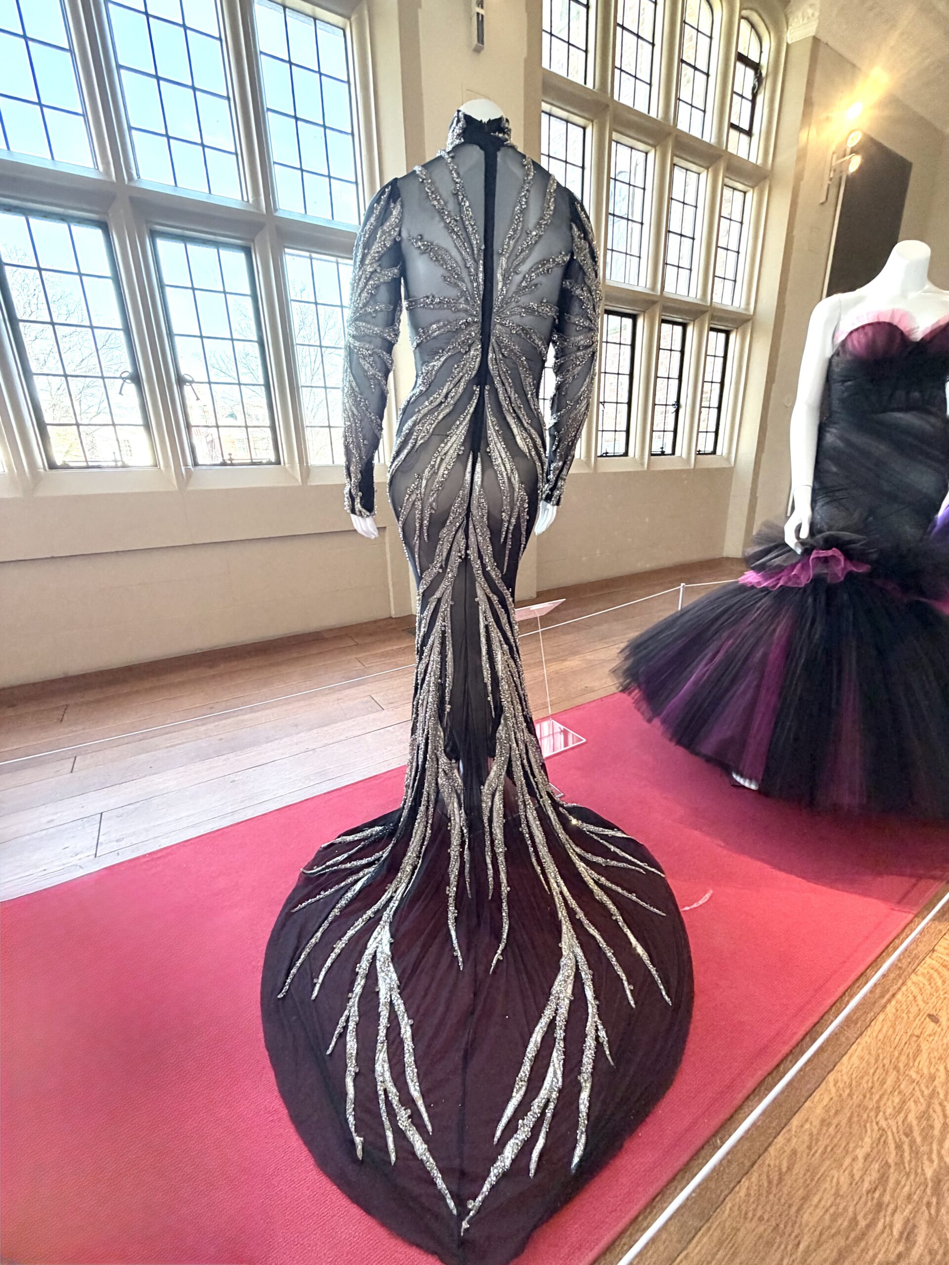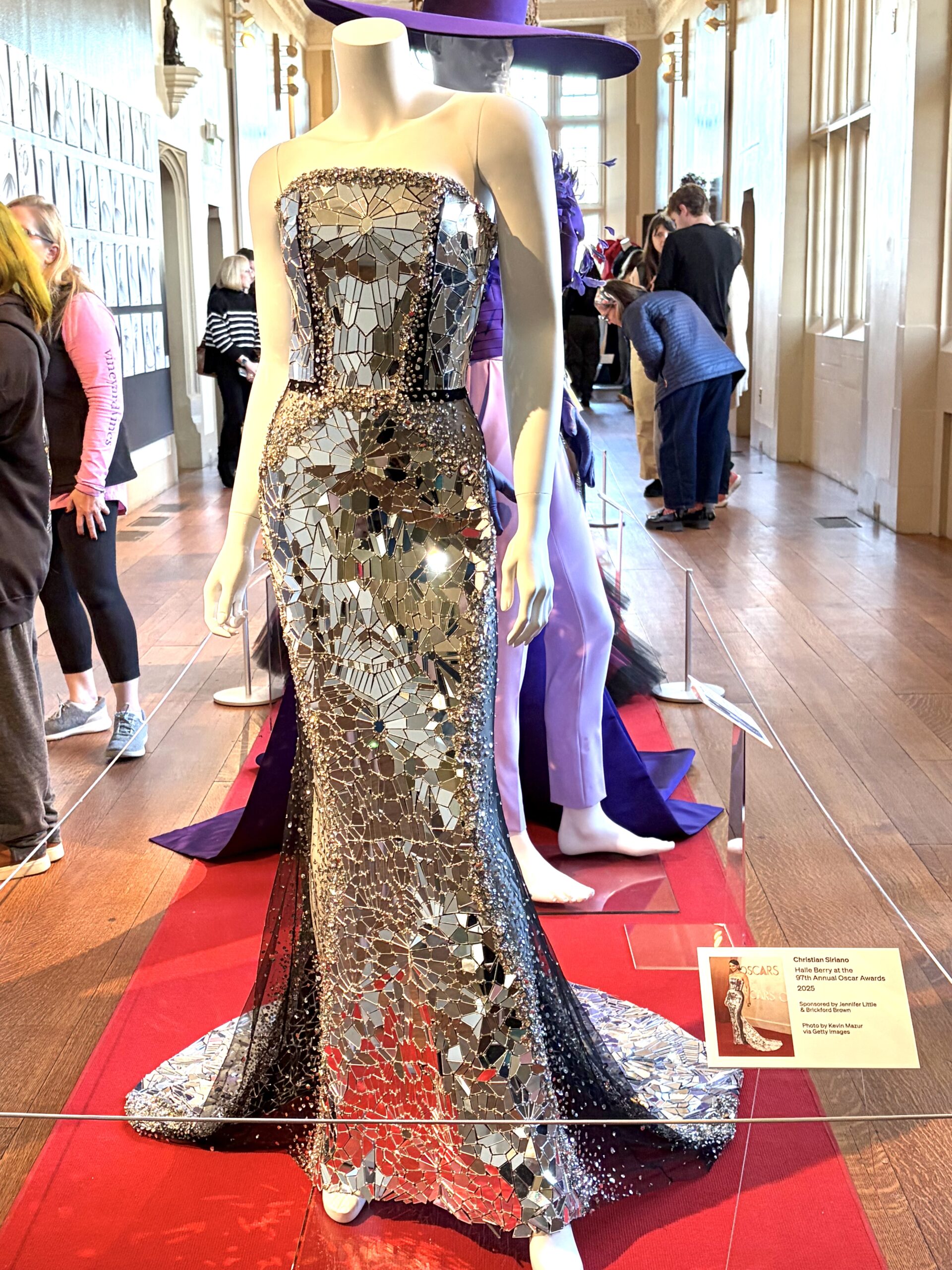 Cavallo shared some interesting stories about the gowns seen in the exhibit, which Siriano curated himself by reaching out to clients and asking if the dresses he designed, and they now own, could appear in the show. (He retains ownership of some of the gowns.) Halle Berry’s gown is amazing. She wore it to the Academy Awards in 2025. Siriano designed it to honor the fact that she had broken the glass ceiling by being the first Black woman to win the Best Actress Oscar for Monster’s Ball in 2002. Composed of 7,000 pieces of broken glass, the shimmering gown weighs 30 pounds. Cavallo explained Berry was happy to share the gown but there was a problem. During the “crush” of the red carpet, the train had been stepped on numerous times and was heavily damaged. Siriano instructed her to send the gown to him and he would make the necessary repairs. It’s a showstopper!