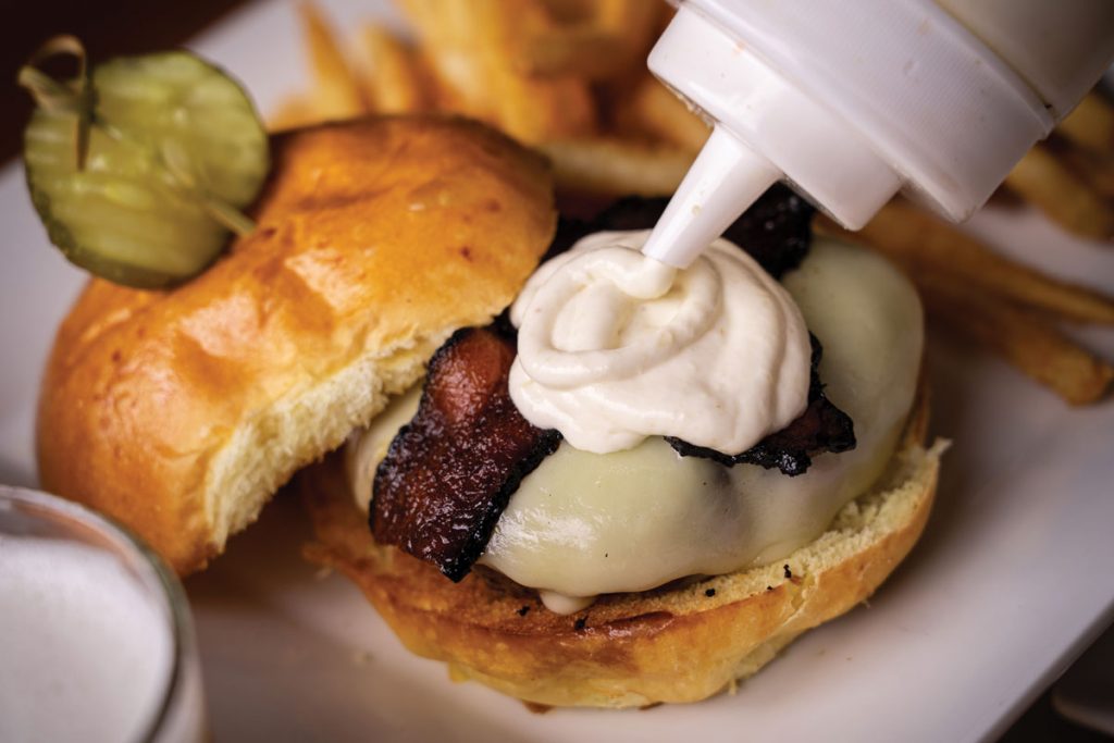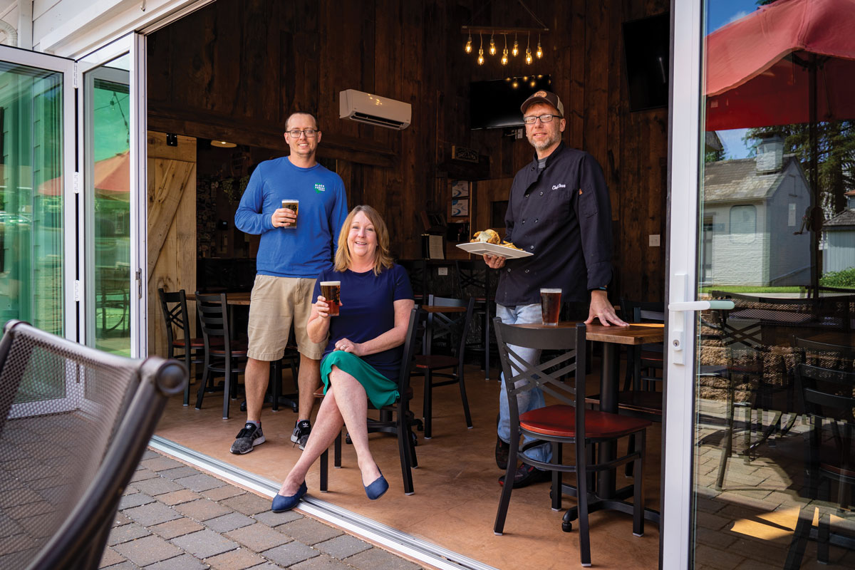 Eric says the brewpub has become known for its burgers as well as its fries – an appetizer features fries topped with house-made beer cheese, caramelized onions, salsa and bacon. “Our chef, Dave Parsons, is very talented with sauces,” says Denise. “The sauces he makes for our drumsticks [the Black Forest version of wings] are great – he’s won awards for the black cherry habanero sauce.”
