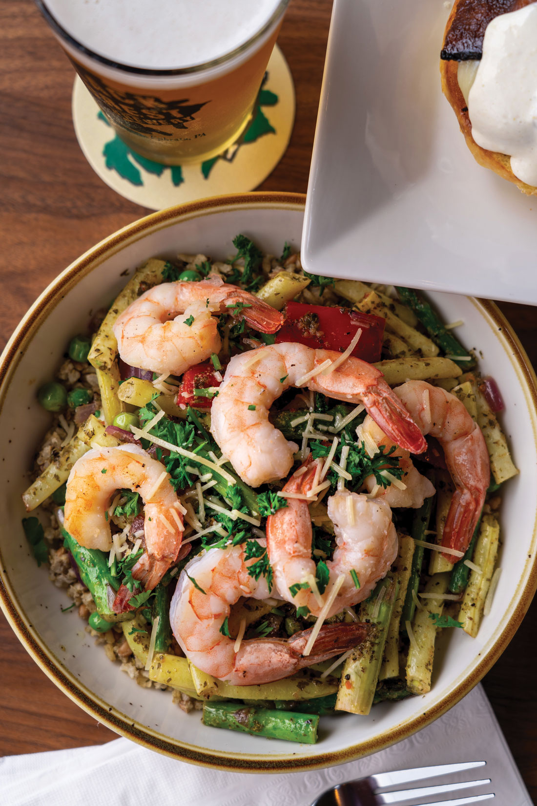 On the menu: Grilled Vegetable Grain Bowl with an option of adding shrimp, steak tips, pork belly or chicken.