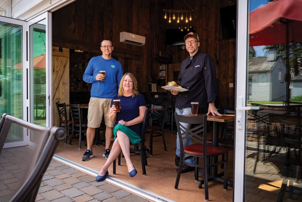 The new addition merges the indoor area with the outdoors. Pictured are (left to right): Eric Sears, bar manager, Denise Harter, owner, and Dave Parsons, chef.