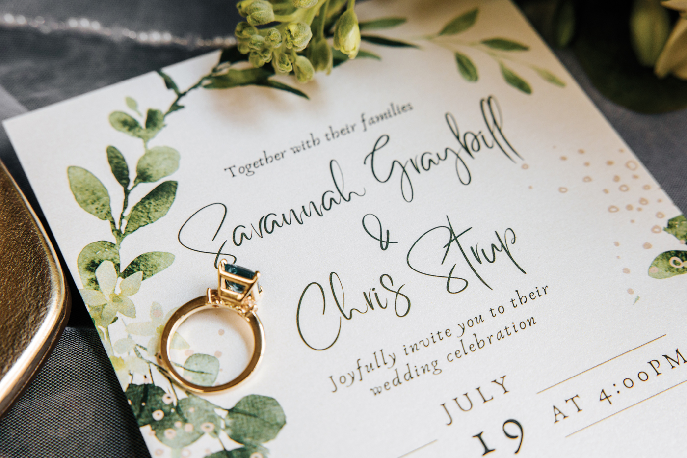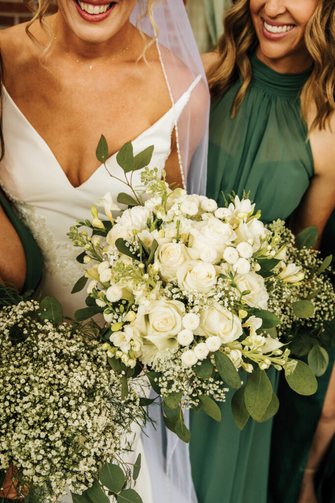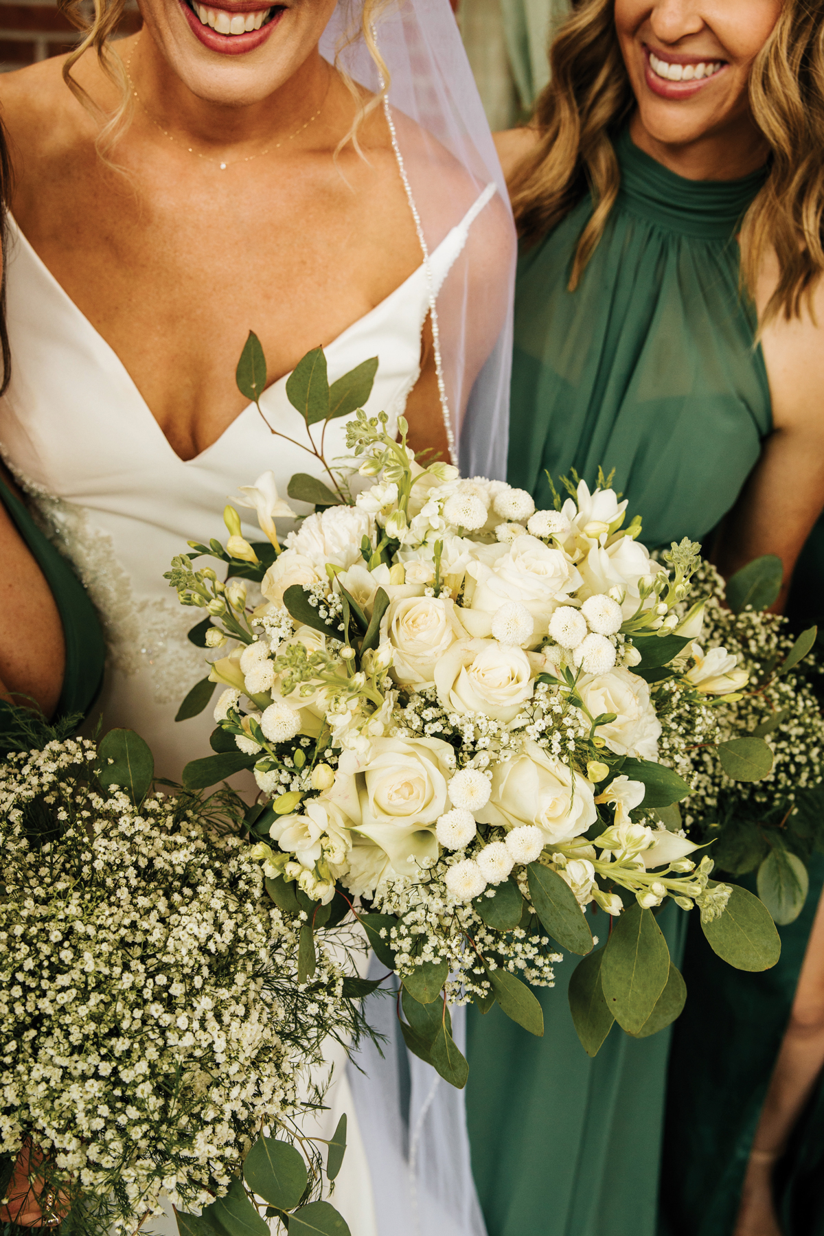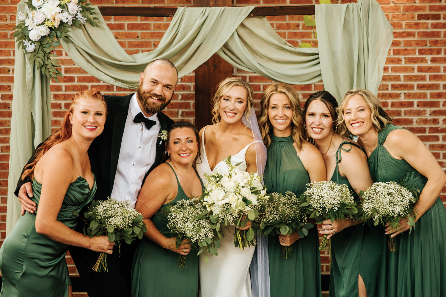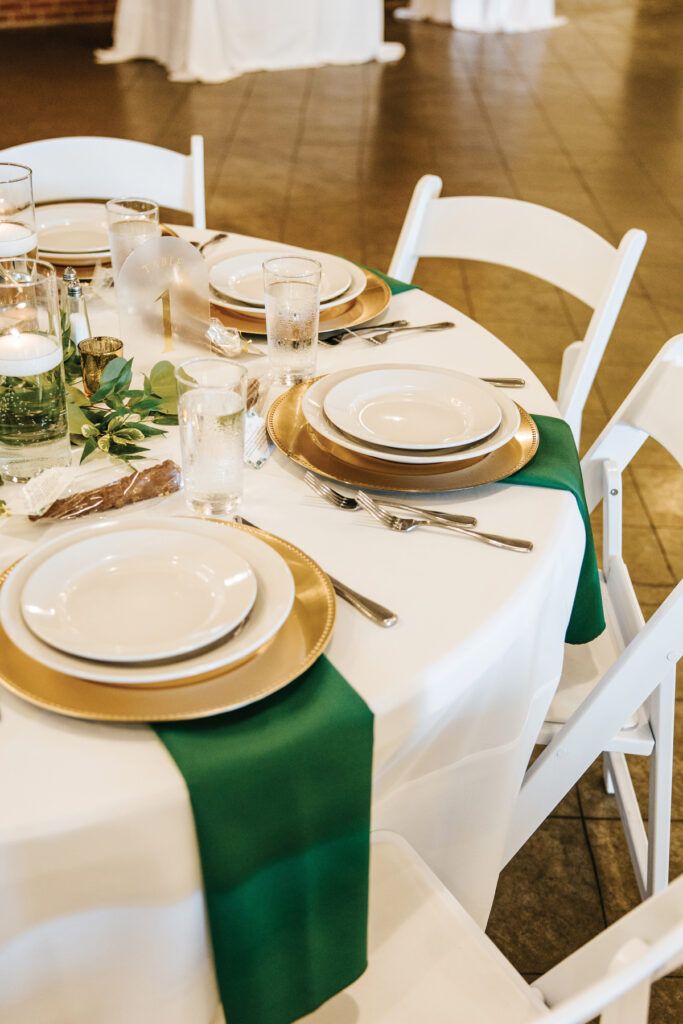 Green, white and gold became the color scheme of the wedding (Savannah’s attendants wore eucalyptus-hued dresses in various styles). Because of the greenery that beautifies the IronSpire Complex, they did not have to bring in an overabundance of florals and decorations.
