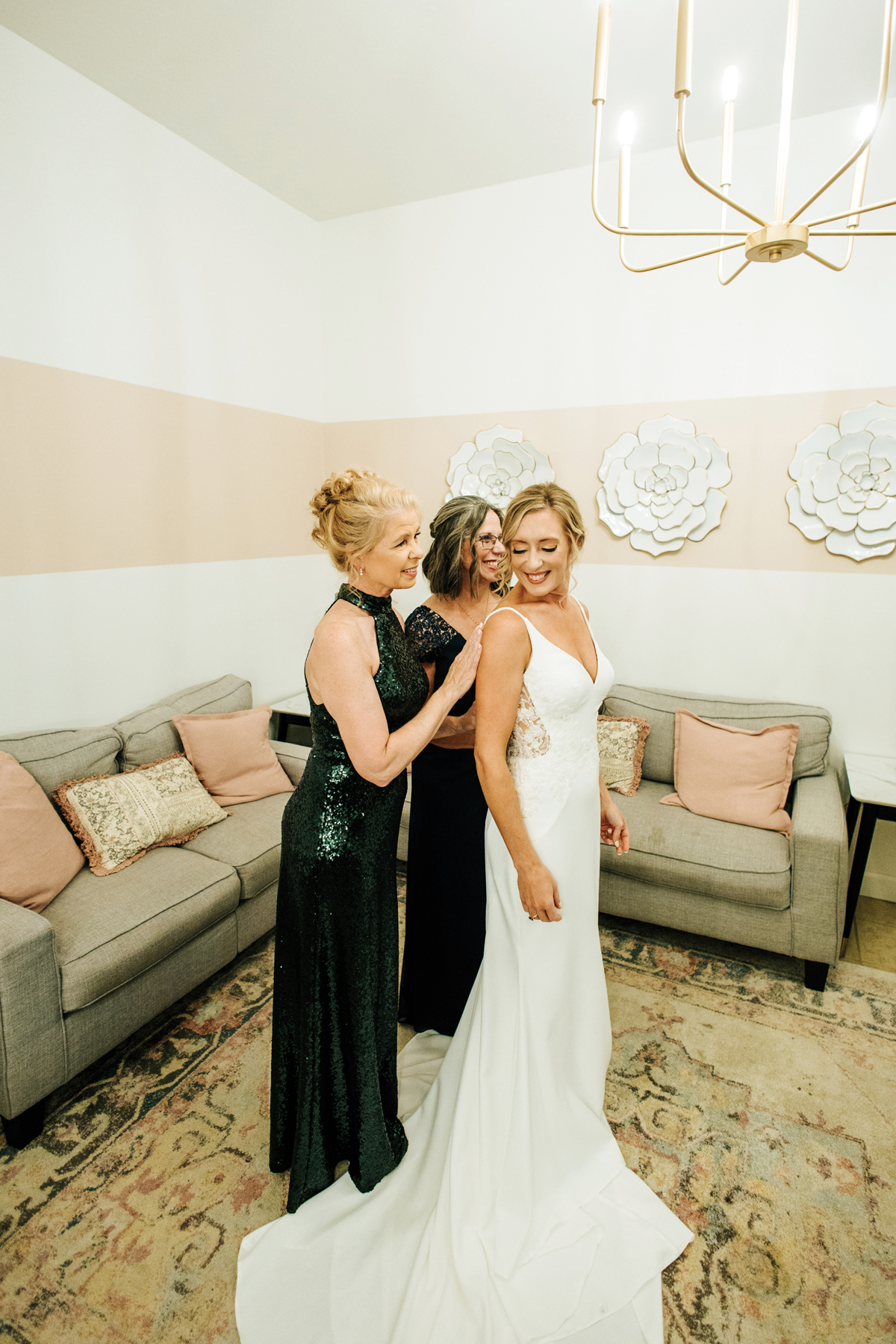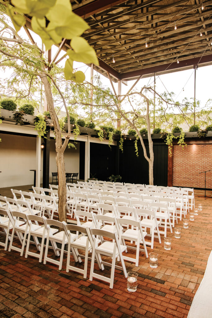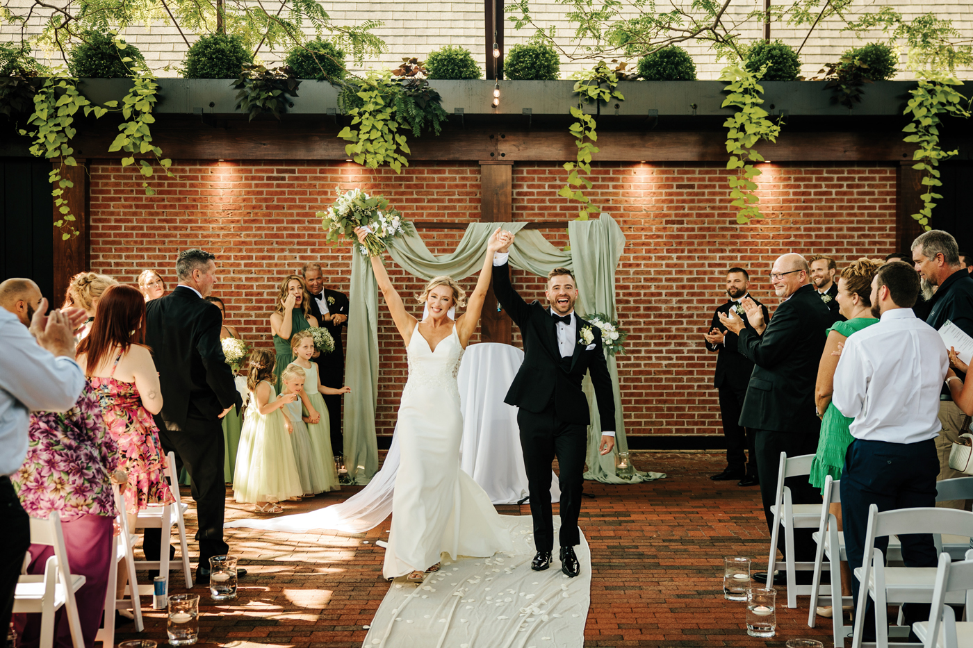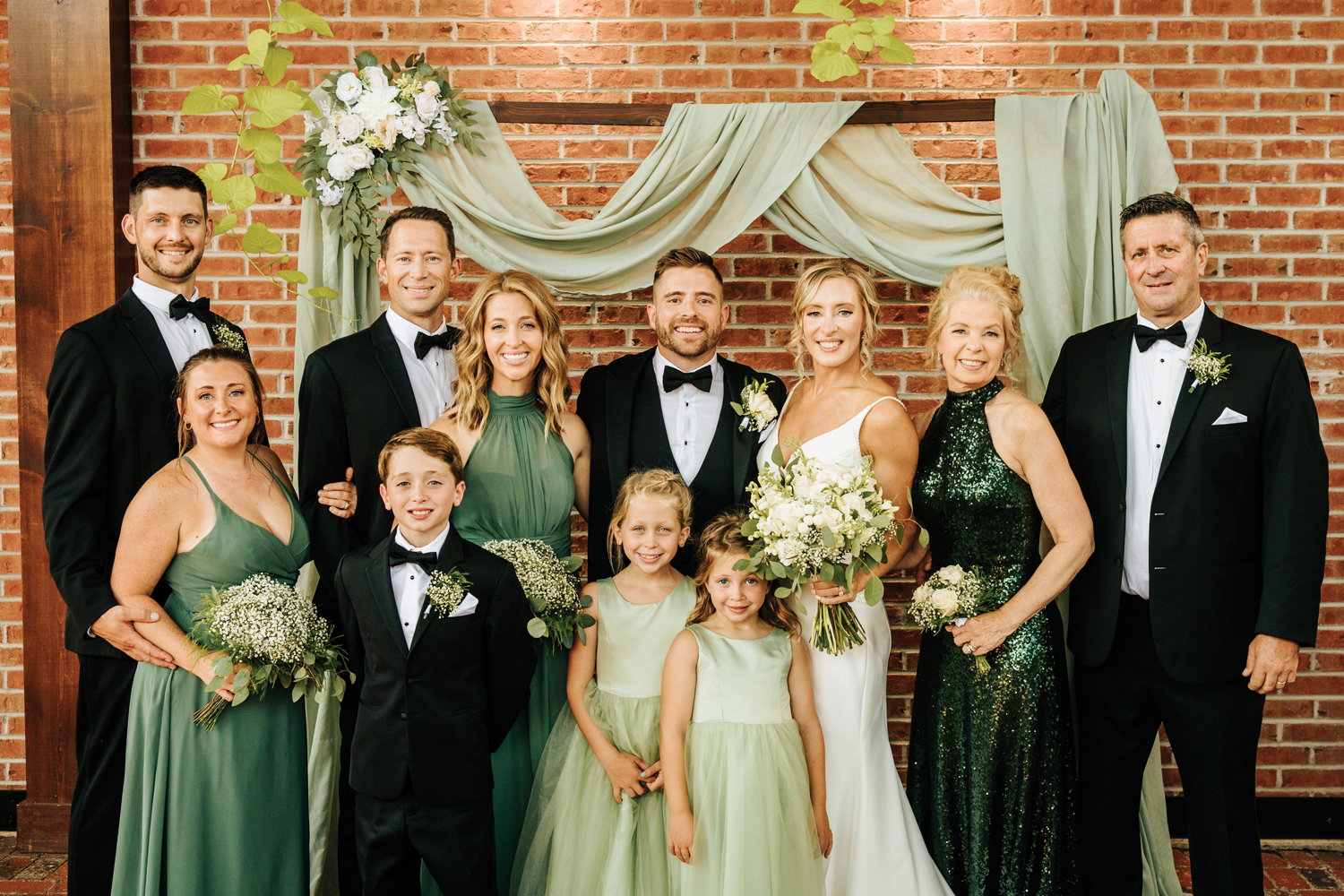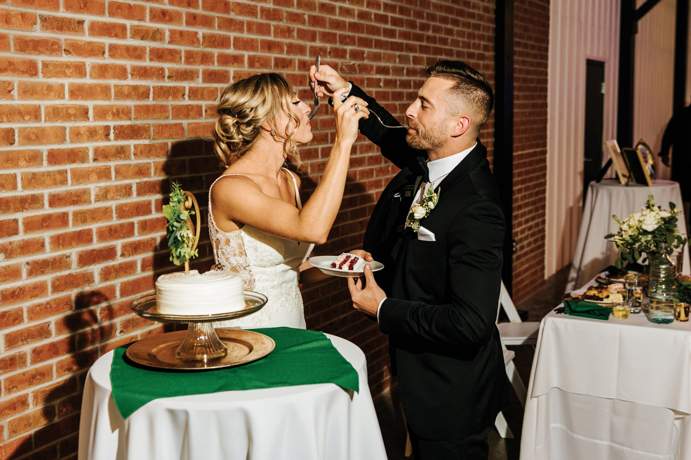 Green, white and gold became the color scheme of the wedding (Savannah’s attendants wore eucalyptus-hued dresses in various styles). Because of the greenery that beautifies the IronSpire Complex, they did not have to bring in an overabundance of florals and decorations.