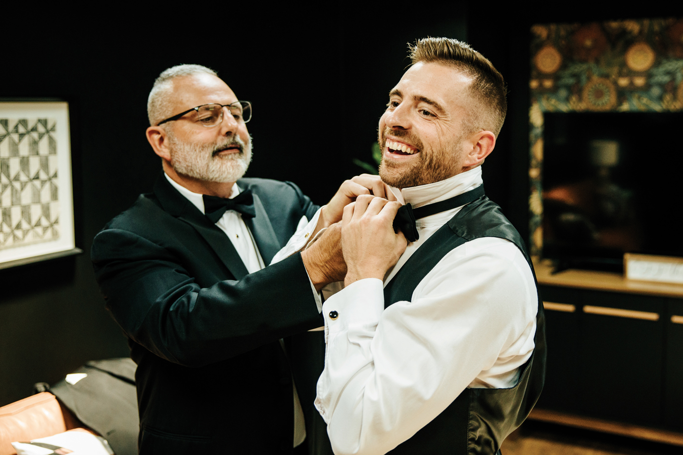 As luck would have it, Chris was offered an incentive trip to Napa Valley just ahead of a trip they had planned to visit Donny and his family. It provided the perfect opportunity to propose. Chris had designed a ring with their mutual friend, Sarah Nguyen, of Sarah Michiko Designs, a jeweler in New York. “I had an idea of what she wanted,” he says.