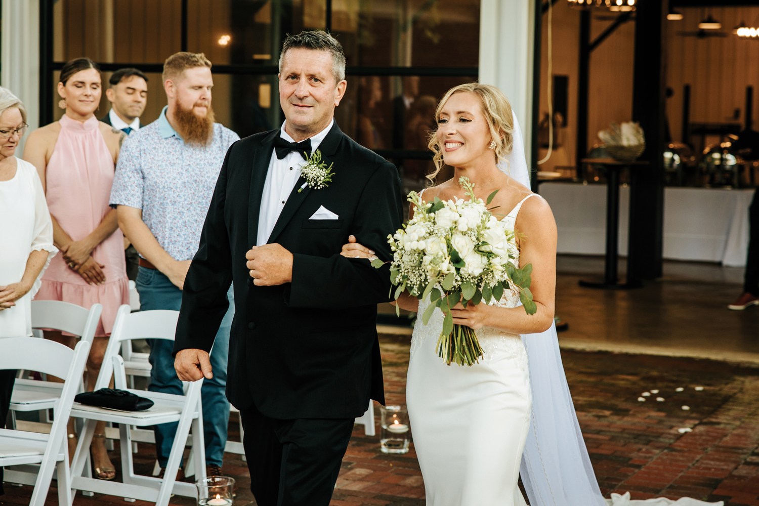 Apart from having Emily Ross on board as the day-of coordinator, Savannah and Chris planned the wedding themselves, along with the incredible help of family. For her dress, Savannah and her mother visited In White, where finding a simple, form-fitting gown was on Savannah’s mind. She found two dresses that fit the criteria and decided to sleep on it before saying yes to one of them. “I went back by myself and tried them on again and made my choice,” she recalls.