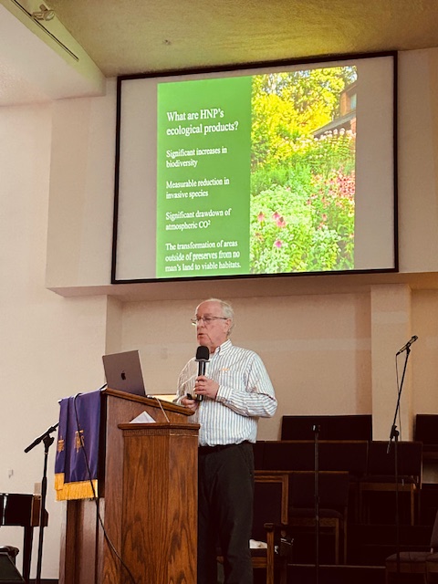 The fact that a church was hosting such an event seemed a bit odd but Bright Side’s pastor, Rev. John A. Knight, explained the connection as he prepared to introduce Tallamy. Bright Side’s campus is located on Hershey Avenue in the city, not far from the Conestoga River, which flows into the Susquehanna and ultimately, the Chesapeake Bay. Lancaster County’s agricultural and stormwater runoffs negatively impact the quality of those waters, especially the bay’s. The church’s property provided unmistakable evidence of that, as heavy rains would wash over the grounds and parking lot and into the storm drains and sewer system.