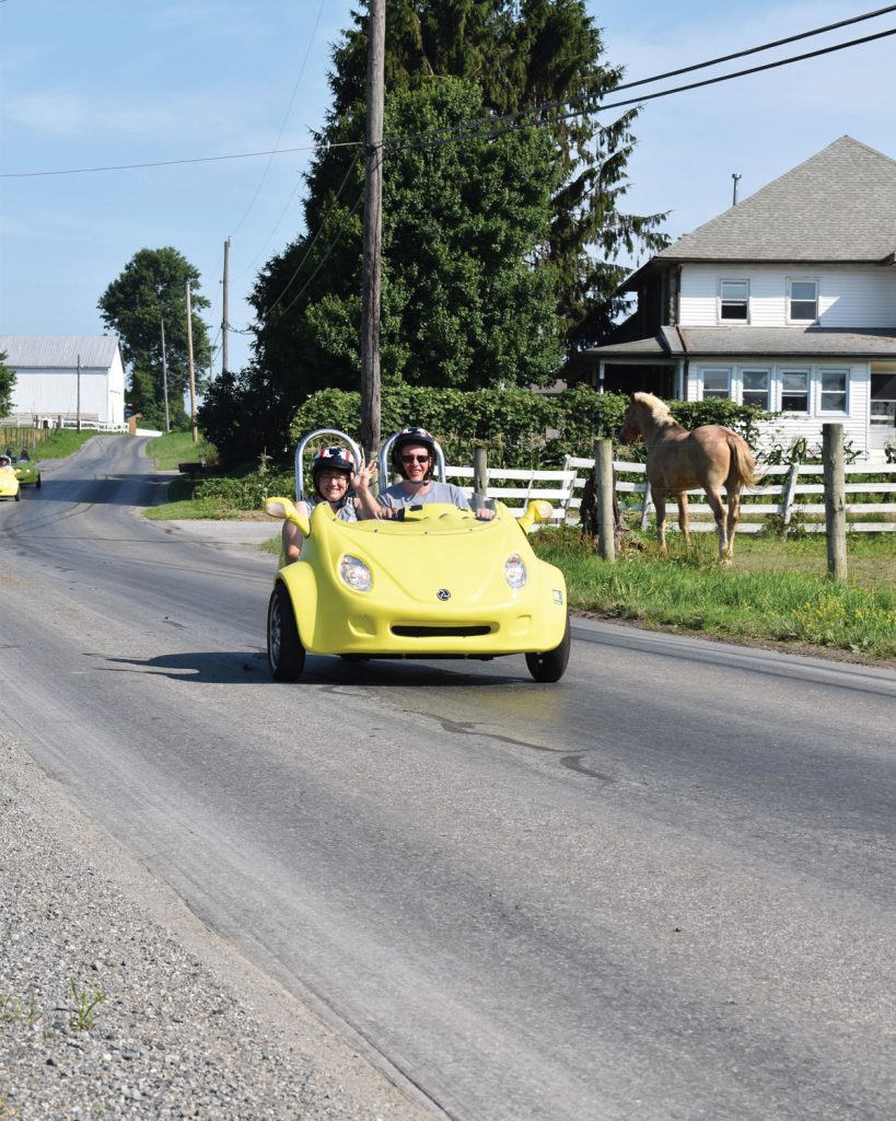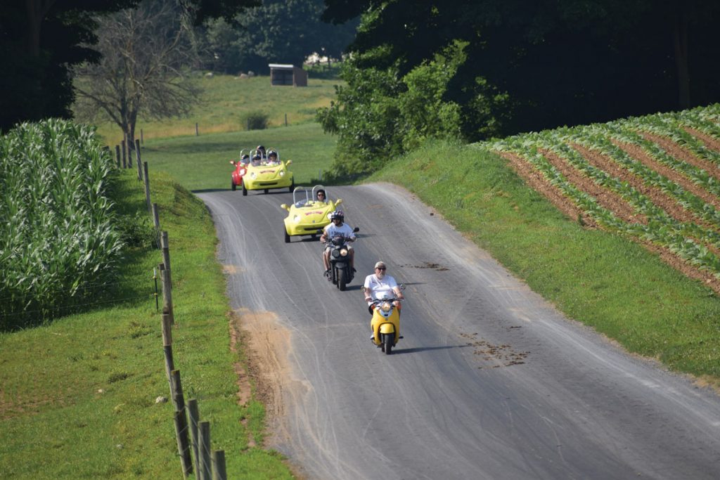 The premise of Strasburg Scooters is relatively simple. Guests tour the countryside via single-seat Hondas, double-seat Yamahas or three-wheeled Scoot Coupes. Themed guided tours include the Covered Bridge Tour, Date Night Tour, Ultimate Amish Adventure, Sunset Covered Bridge Tour, Ice Cream Experience, Spooky Scoot and the Thanksgiving Day Tour.