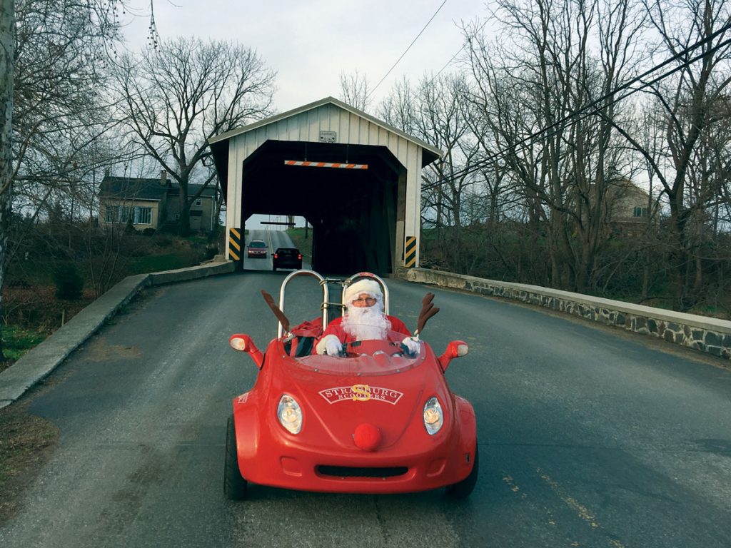 Amtrak has its trains, Greyhound has its buses, the Amish have their buggies, and Santa has his sleigh. However, this holiday season, Santa – aka Marc Crusemire, the co-owner of Strasburg Scooters – is trading in his sleigh for a 50cc Scoot Coupe, and he wants people to join him as he travels “over the bridges and through the woods” of Lancaster County.