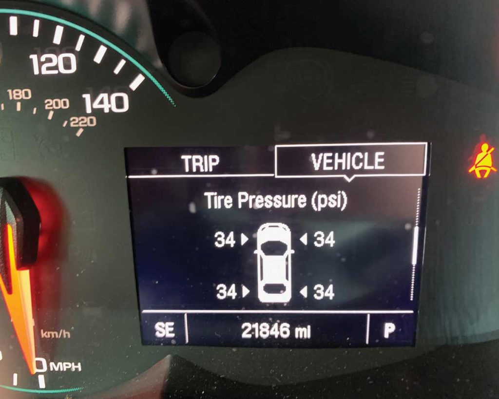 I love this car! Especially the fact that all I have to do is push a button and I can see how much pressure is in each of the tires. I also get alerts from OnStar if a tire is low. Oh, and you can talk on the phone through the radio. One time I talked to a friend all the way home from Allentown, while keeping both hands on the steering wheel. I even got my garage door fixed so that the car wouldn’t have to sit in the rain and snow.