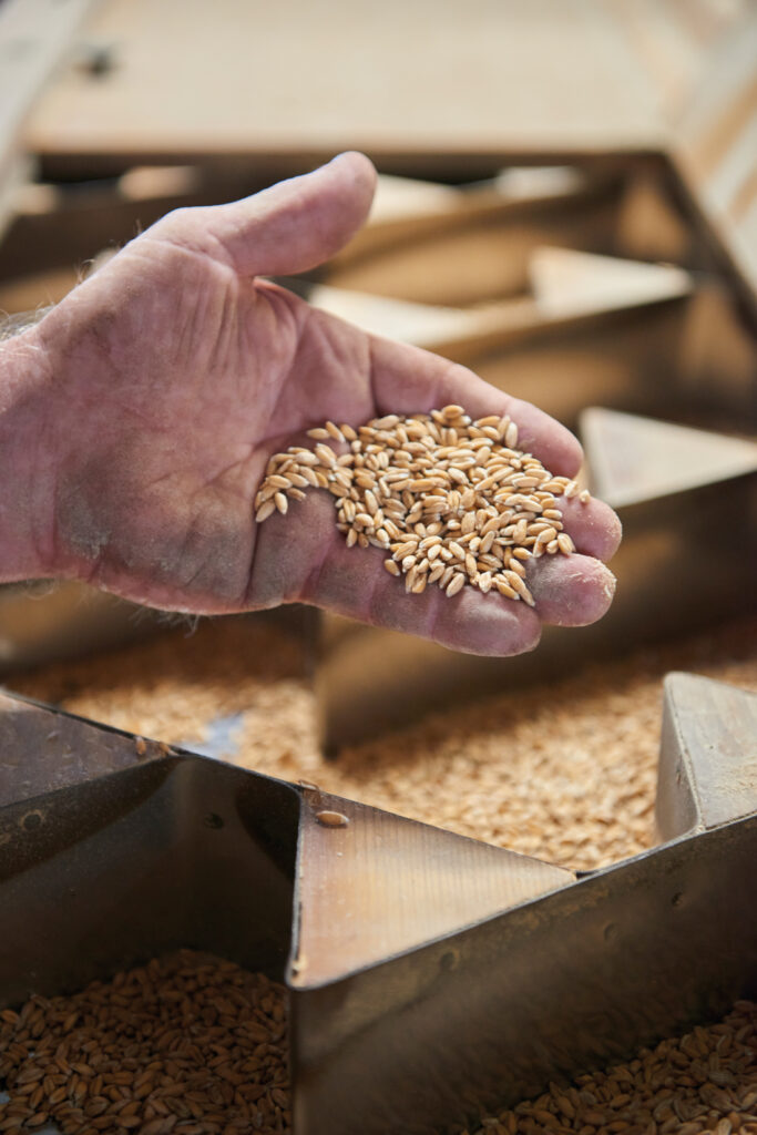 “Unlike wheat, emmer, einkorn and spelt have a hull that’s not removed in the field,” says Eric. “Wheat is a free-threshing grain; once it’s combined it’s ready to be cleaned and milled, whereas spelt, emmer and einkorn have to go through a de-hulling process. That adds time and cost; you have losses, more time in cleaning.”