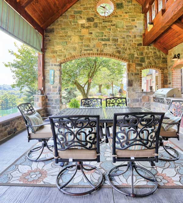 Noting how pleasant the area is, she suggested they replace the gazebo with something more multifunctional. The idea appealed to her husband, who always wanted an outdoor kitchen. So, they turned to Renovations by Garman for ideas on how their diverse wish lists could be merged. “They had ideas for its use and function, but aesthetically, we had a blank canvas to work with,” says Fred Heim, who is the company’s vice president of operations.