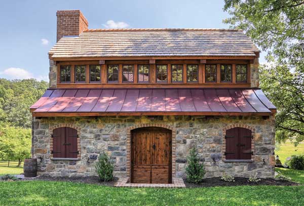 Fred took note of the period-look buildings on the property and surmised the summer-kitchen approach would perfectly complement them. “We wanted to design something that looked as if it had always been there,” he explains. “It would have looked odd to come up the driveway and see something that looked new,” he adds.