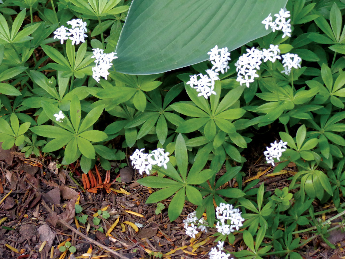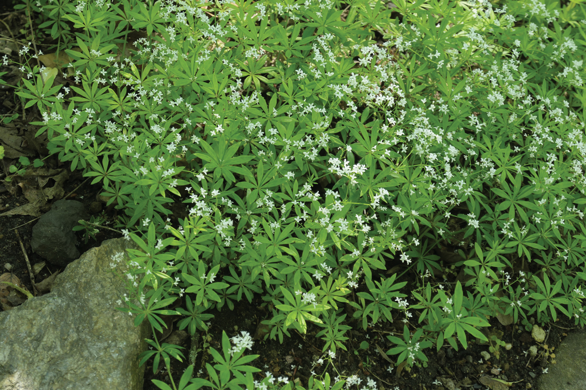 Attributes: Plants emit a strong odor of freshly mown hay when the foliage is crushed or cut. Traditionally used in potpourris, the leaves are also used to flavor jellies, teas and cold fruit drinks. Sweet woodruff will grow under a black walnut tree and deer do not browse.