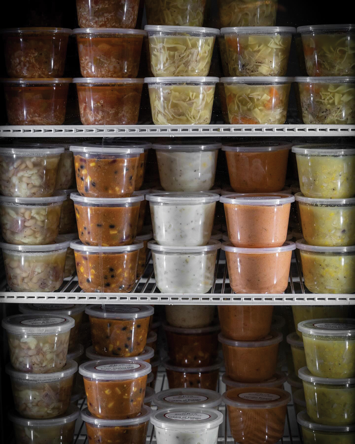 The sandwich selection includes ham-and-brie panini; turkey bacon; meatball sub (available only on Mondays); grilled cheese (sharp cheddar cheese on toasted white, wheat or rye bread); and veggie (portobello, cucumber, roasted red pepper, tomato, cheese, with hummus on toasted rye or flax bread). “The café’s sandwich menu is pretty stable, but people can change them. The tuna melt can become tuna on a croissant,” Brandon points out. The menu also features two hot soups daily, and Brandon says they’re based on what’s fresh and in season. Soups are available by the cup or bowl. The café menu also includes quiche, yogurt parfait, granola, and ranch or honey-nut snack mixes.