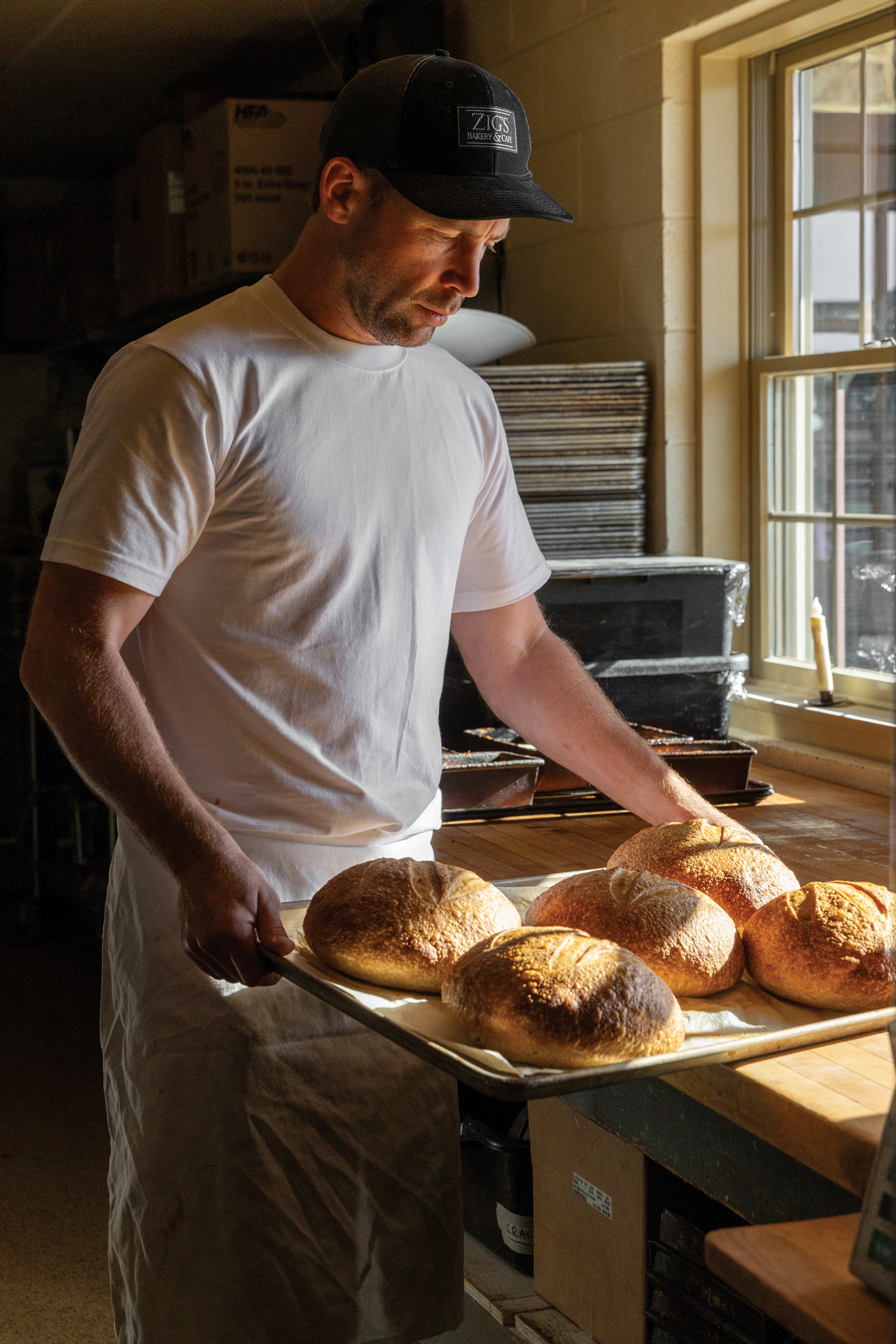 “I grew up in this area,” says Brandon Ziegler, owner of Zig’s. (His nickname is “Zig”, hence the name of the business.) “It’s fun to be able to use an old barn as a gathering space. The café has a lot of warmth to it – there’s stone, wood and a bit of a modern feel.” Ten years ago, Brandon partnered with family members to repurpose an 1800s brick-end barn. It’s now home to not only Zig’s Bakery & Café but also Brick Gables, an event space operated by family members.