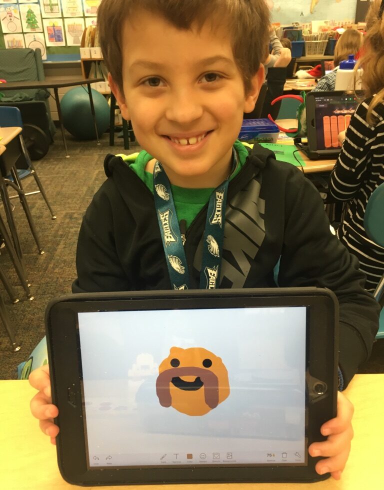 Ben’s drawing of Brad during a No Shave November fundraiser. Students donated coins into the jars of their favorite teachers. The male teachers who won the most had to cut their beards into wacky designs. Photo courtesy of Brad Miller.