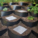 Founder and designer, Mark Trebilcock, developed the idea in California, where water conservation is necessary. Dirt Locker “saves water, improves the growth success of plants … requires no special hardware, reduces erosion and is environmentally friendly.” The matte-black cells and extra surface area aid in heat absorption to bolster the growing season. Soil can be amended or fertilized uniquely in individual “lockers” for specific plant needs, such as adding lime for asparagus. Once installed, a staggered column can be used as stairs, making it much easier to traverse the hillside. Terracing the hill added enormous value to how we enjoy our home and changed how we interact with the space.
