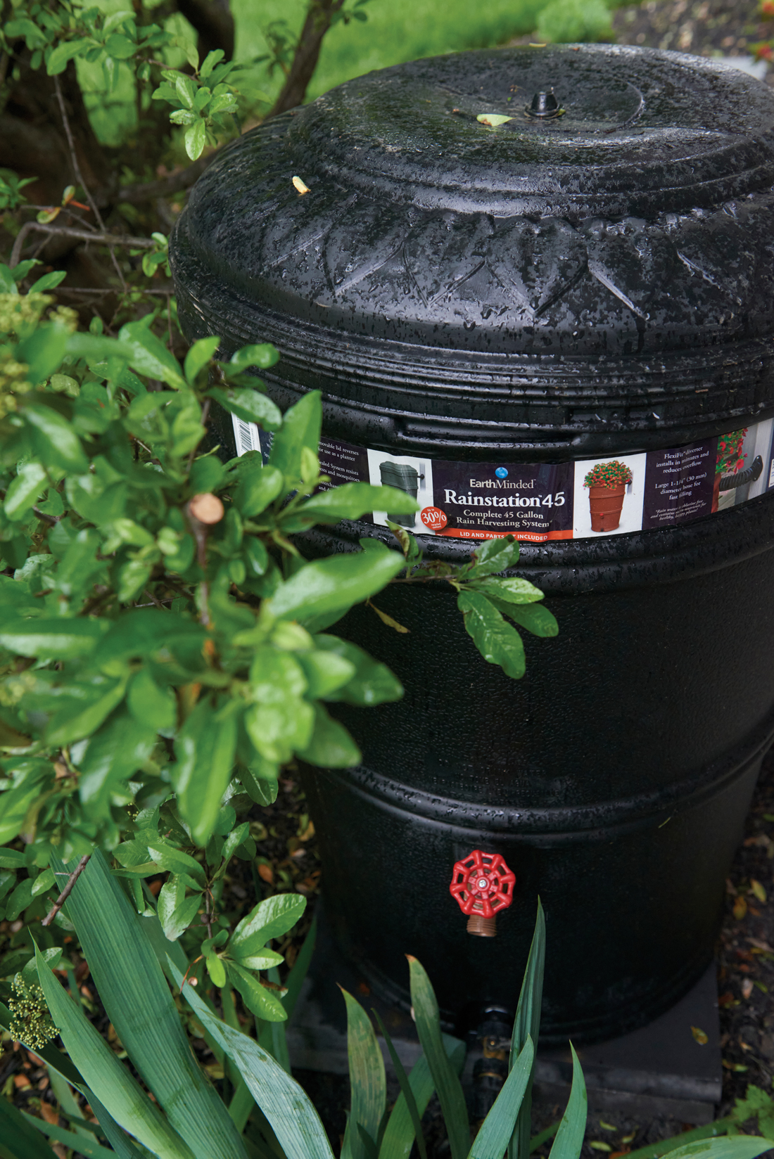 In my garden, gravity works favorably, but if added water pressure is needed, a water pump can be added, many of which are solar powered. To calculate how much rainwater you can capture, for every inch of rain, multiply your roof area by .6 to convert the area into gallons. Half an inch of rain is more than enough to fill my 45-gallon barrel.
