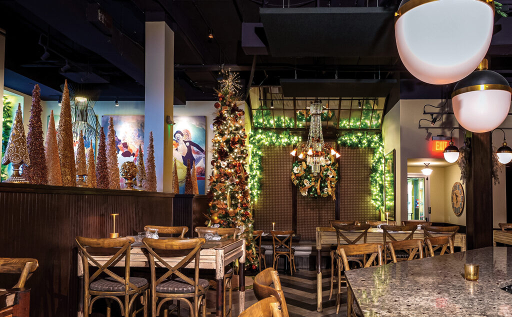 When Ponessa decided to sell, Dean was one of the first people he approached to take it over. “There was no question; I said yes right away,” he recalls. Renamed 401 Prime, the restaurant takes its inspiration from upscale steakhouses of yesteryear but puts a modern-day spin on the concept through offering products such as wagyu beef. “We didn’t change a thing except to transform a wine cooler into a meat-aging fridge,” Dean reports. Open since last November, the team still made it a priority to enliven the beautiful décor with holiday decorations.