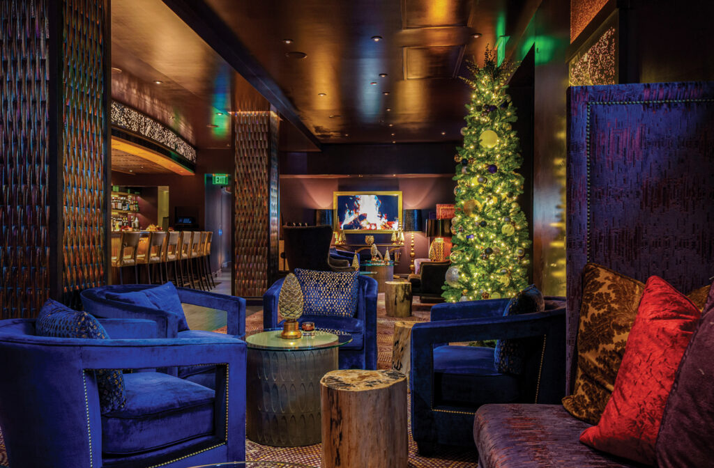 Not knowing how to decorate C’est La Vie, whose color scheme revolves around earth tones and citrusy hues, he turned to Tim Arpin of The Gilded Lily for help. Tim now oversees the holiday décor at all four restaurants. In the case of the Belvedere, “It goes up the second or third week of November – guests who come for Thanksgiving dinner have come to expect it – and stays up well into January,” Dean explains. “We host a lot of post-holiday parties and people enjoy that the decorations are in place.”