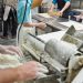 When the meat is chilled, it is separated from the bone by hand and refrigerated. Wisely, the skin is retained and sent through a grinder, a magical ingredient adding richness to the broth.
