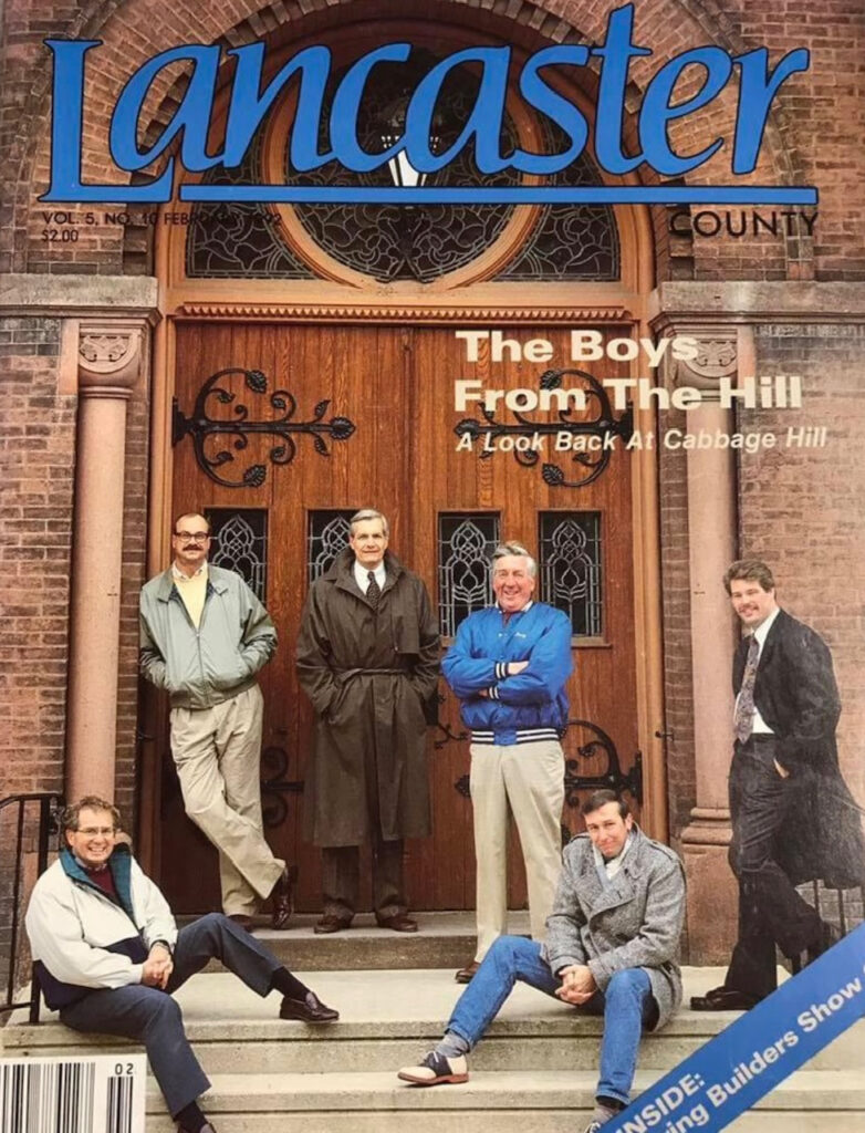 Of course, that cover never fails to bring back memories. Dating to February 1992, it celebrated “The Boys From the Hill,” which was a take-off on the title of a popular movie at the time. That year, Lancaster was celebrating its 250th anniversary, so we kicked off the milestone with a feature about Cabbage Hill. In dreaming up the cover, I wanted it to be photographed on the steps of St. Joseph’s Catholic Church. The “boys” we asked to participate included Walt Legenstein, who grew up on Lafayette Street and went on to own Certified Carpet; Harry Flick, Jr., who grew up on Manor Street and at the time was the head of the Pennsylvania Dutch Convention and Visitors Bureau; attorney Bob Pfennebecker, whose family operated the most amazing bakery on Manor Street; Jerry Darrenkamp, whose store on Union Street was legendary and later grew to include outposts in Willow Street and Mount Joy; Chris Kunzler III, whose grandfather founded the famous meat company that continues to thrive on Manor Street; and Paul Vaughn, Jr., whose family’s paint company was launched on Cabbage Hill.
